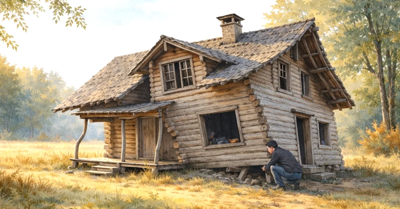 Am nächsten Morgen kroch der Mann fest entschlossen unter die Veranda. Er prüfte die Balken einen nach dem anderen. Manche ließen sich leicht lösen. Andere wehrten sich, splitterten, als wollten sie bleiben. Er ersetzte sie langsam und sorgfältig, nicht alle auf einmal, sondern Stück für Stück, in seinem eigenen Tempo. Mit jedem ersetzten Balken wuchs ein Gedanke, der neu für ihn war: Ich darf selbst entscheiden, worauf ich stehe. Ich muss das Fundament nicht akzeptieren, wie es mir gegeben wurde, ich kann es ändern.
